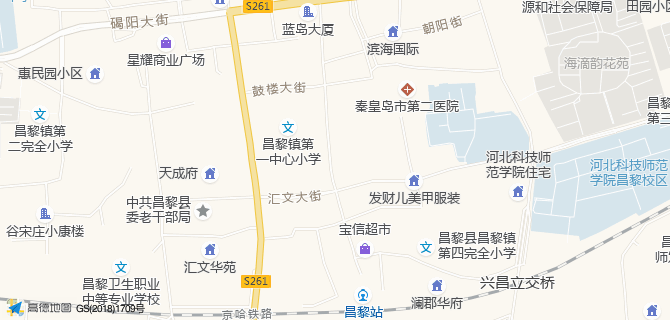 秦皇岛市昌黎县民生路与步行街交叉口北80米