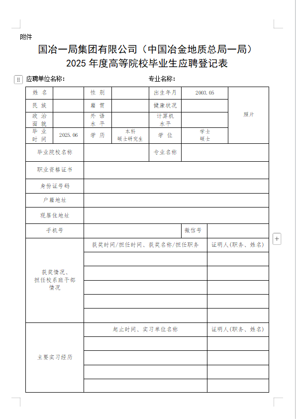 附件:集团公司(一局)2025年度高等院校毕业生应聘登记表.doc