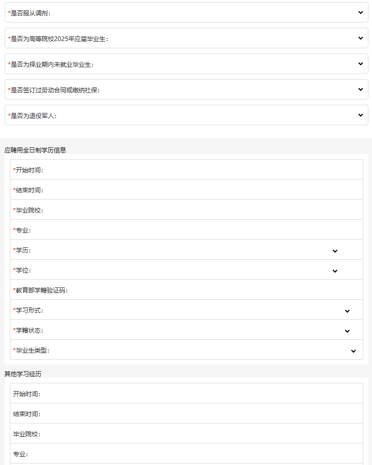 2.学历条件:全日制大专及以上,国内普通高等院校毕业生应于2025年7月31日前取得相应毕业证、学位证,国(境)外院校毕业生应于2025年8月31前取得国家教育部认证的学历学位认证证书。