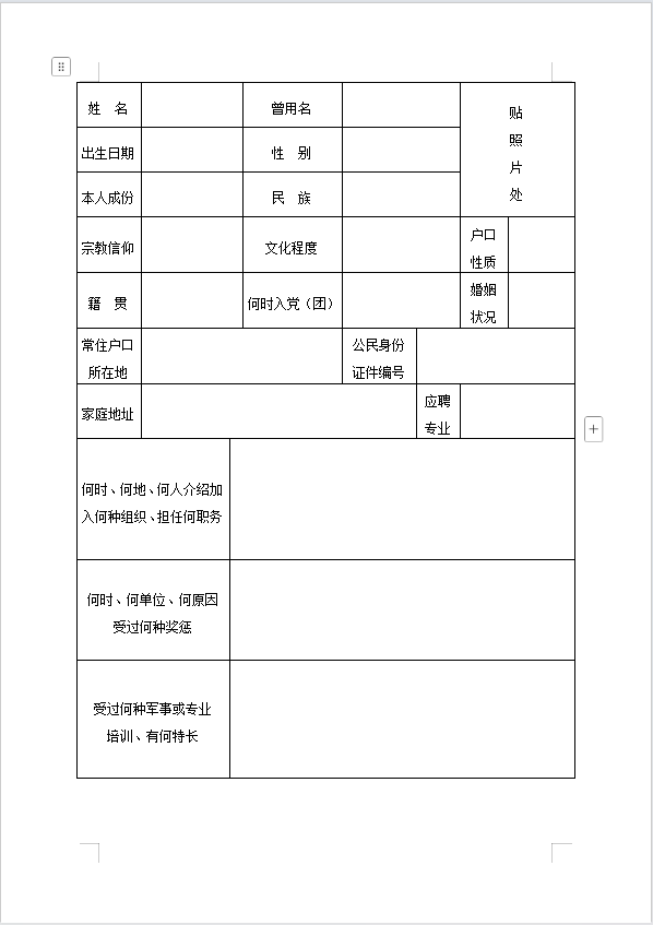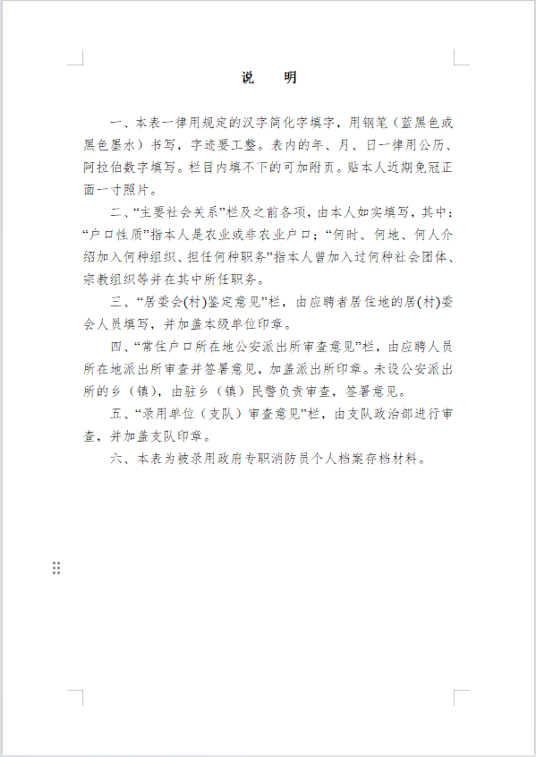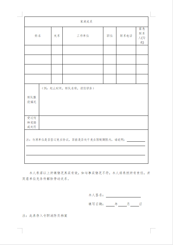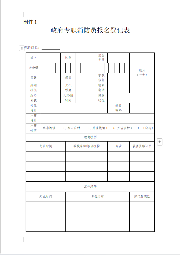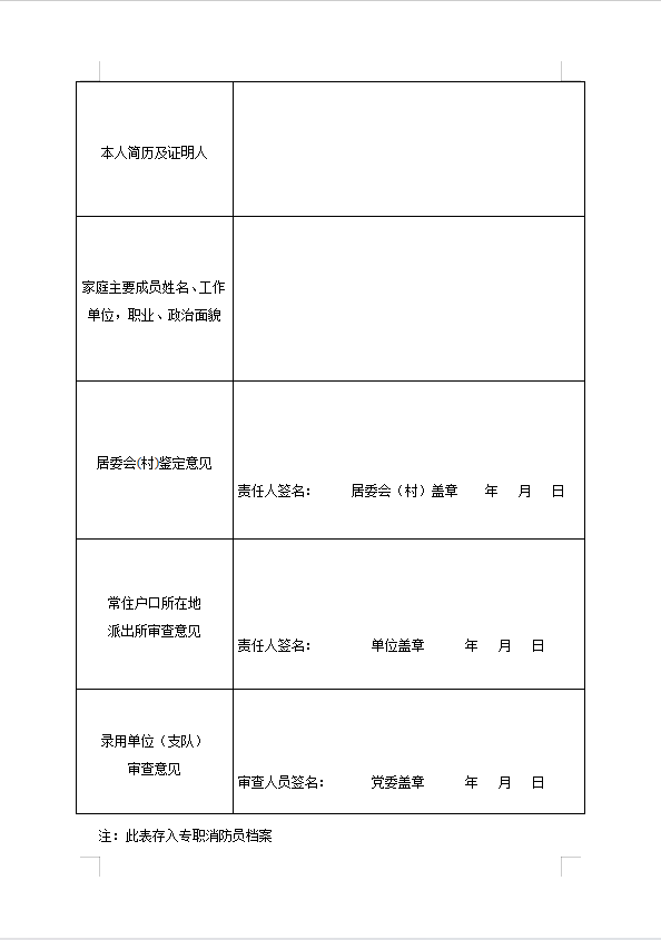 1、政府专职消防员报名表、政审表