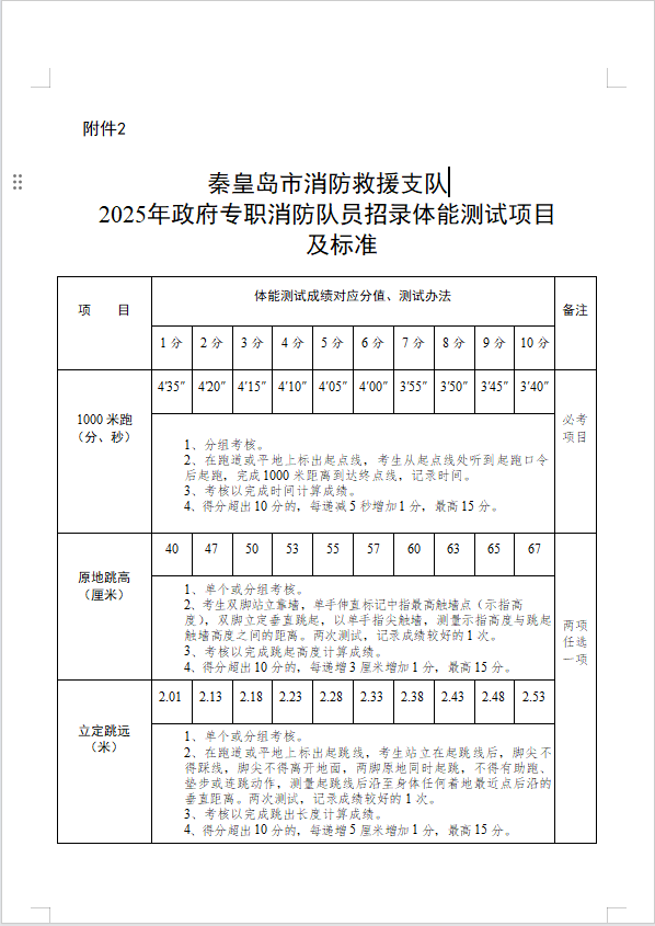2、2025年政府专职消防队员招录体能测试项目及标准;